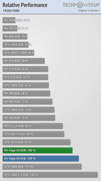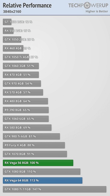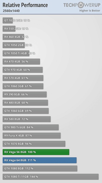 主流显卡相对性能(201710) 作者: gcfan 日期: 2017年10月20日 分类: 显卡评测,首页 暂无评论 浏览次数 13331 喜欢 0 评分 12345 好久没更新这个了,还是TPU的最新显卡评测附带的天梯图吧,说是最新,其实也是8月份AMD发布Radeon RX Vega时候的数据了。 主流显卡相对性能天梯图: 1920×1080分辨率下(主流2K分辨率): 2560×1440分辨率下(2.5K分辨率): 3840×2160分辨率下(未来两年普及目标4K分辨率):