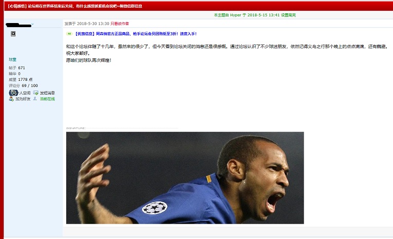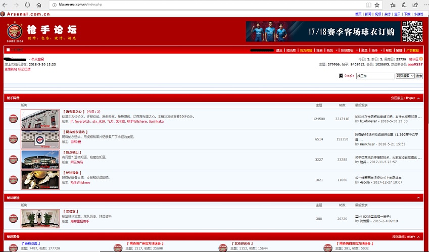 前几天上了一下很久没打开的阿森纳中文球迷论坛——枪手论坛,居然看到了论坛要关闭的消息。论坛是04年阿森纳不败赛季成立的,我也是当年注册的。十几年过去了,由于互联网发展进程,加上球队成绩这几年很不理想,论坛早就没了人气。